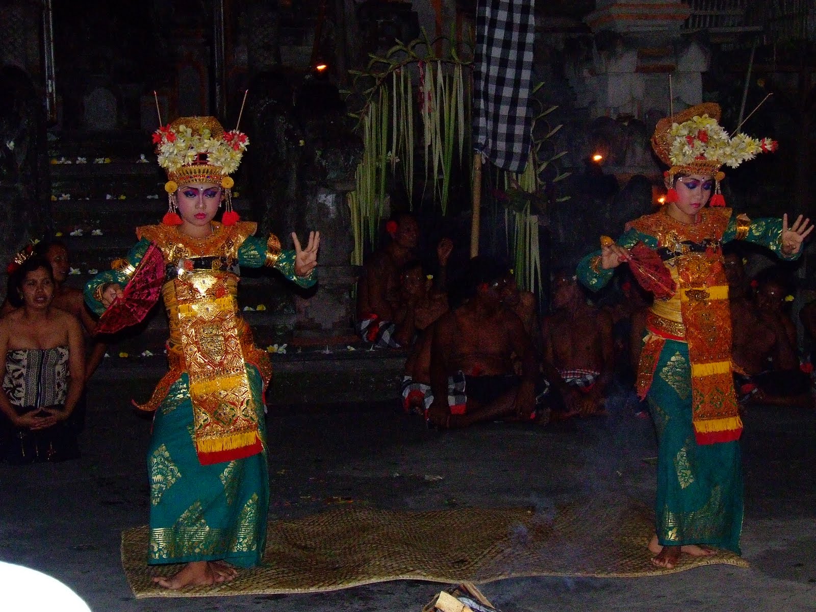 Young Balinese dancers. I'm not sure of how the costume is put on. It looks as if it has been wrapped around their bodies many times and held together with pins, but it might just as well be sewn together. Still, it's gorgeous!